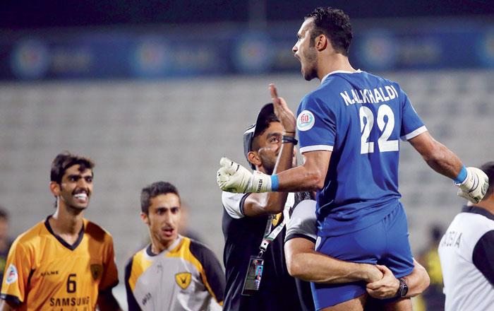 ونجح الرباعي بدر المطوع وفهد الانصاري وخالد ابراهيم والسويسري دانيال في احراز اهداف الاصفر من ركلات الترجيح في حين اخفق ضاري سعيد بالتسجيل سجل امجد راضي واحمد حسين واهدر هوار ملا محمد وعلي الفايز.