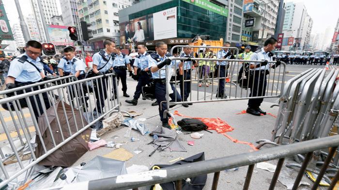 هونغ كونغ - أ ف ب: أصيب العديد من المتظاهرين المطالبين بالديموقراطية في هونغ كونغ بجروح صباح الأحد خلال محاولة الشرطة تفريقهم بالقوة، كما افادت مصادر متطابقة.