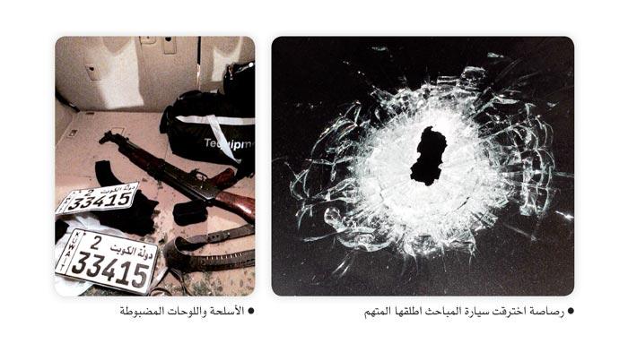 رصاصة اخترقت سيارة المباحث اطلقها المتهم - الأسلحة واللوحات المضبوطة