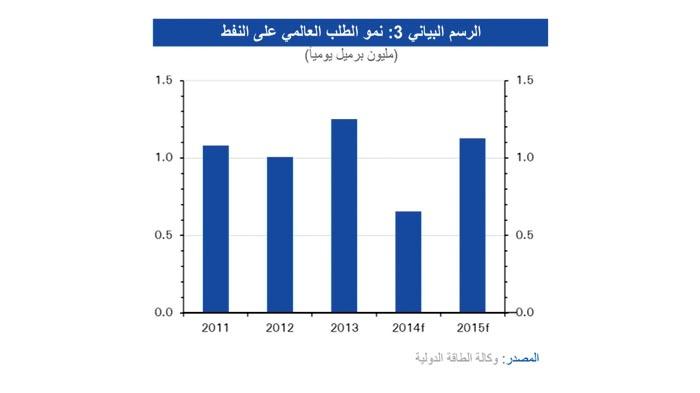 قامت وكالة الطاقة الدولية بخفض توقعاتها لرابع شهر على التوالي بشأن نمو الطلب العالمي على النفط لعامي 2014 و2015 الى 700 ألف برميل يومياً و1.1 مليون برميل يومياً على التوالي.وسوف يكون نمو الطلب المتوقع هذا العام الأضعف منذ العام 2011.وبذلك، من المتوقع ان يرتفع الطلب الاجمالي العالمي على النفط الى 92.4 مليون برميل يومياً في عام 2014 و93.5 مليون برميل يومياً في عام 2015.ويعزى جزء كبير من انخفاض توقعات النمو الى ضعف بيانات تسليم النفط عن المتوقع في الربع الثاني من عام 2014، وكذلك الى اعادة تقييم الطلب بالانخفاض من منطقة اليورو والصين.ويختلف الموقف مع وجود نظرة مستقبلية أفضل بالنسبة للطلب الأمريكي على النفط.فقد دعم الاستخدام الموسمي الأعلى للبنزين الطلب على النفط في الأسابيع القليلة الماضية.وقد تشهد بيئة الاقتصاد الكلي الأمريكي الأكثر ايجابية ارتفاعاً آخر في الطلب في عام 2015 على الرغم من توقع وكالة الطاقة الدولية بحدوث تراجع عام في طلب منظمة التعاون الاقتصادي والتنمية في العام المقبل.وفي المقابل، من المتوقع ان تأتي كافة الزيادة المتوقعة في الطلب العالمي العام المقبل من الاقتصادات غير الأعضاء في منظمة التعاون الاقتصادي والتنمية.