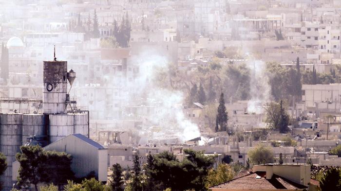 دخان يتصاعد من كوباني بعد تزايد المعارك فيها (أ ب)