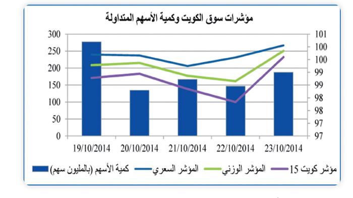 وأشار التقرير الى ان جلسة الأمس قلبت موازين التداول في السوق حيث شهدت اقبالا قياسياً على بعض الاسهم القيادية بعد أخبار الخصخصة التي طرحتها الهيئة العامة للاستثمار وما تناقلته الصحف حول بيع الهيئة لحصتها في بعض الشركات المُدرجة، مما دفع بالمؤشر السعري للمنطقة الخضراء على صعيد الاداء الأسبوعي وقلص بشكل كبير من خسائرالمؤشرات. ليسجل المؤشر السعري ارتفاعا هامشيا بلغت نسبته 0.06 % باقفاله عند مستوى 7.414.75 نقطة، بينما تقلصت خسائر المؤشر الوزني الى %0.16 بعد ان أغلق عند مستوى 486.93 نقطة، وتراجعت خسائر مؤشر كويت 15 الى %0.40 ليقفل عند مستوى 1.190.77 نقطة.هذا ويعتبر التحول في أداء المؤشرات خلال جلسة نهاية الأسبوع هام جداً لأنه سيُعطى دفعة معنوية للسوق ومؤشراته مع انطلاقة تعاملات الأسبوع المُقبل اضافة لاعادة الثقة للمتداولين وجذبهم مرة أخرى بالعودة للسوق.