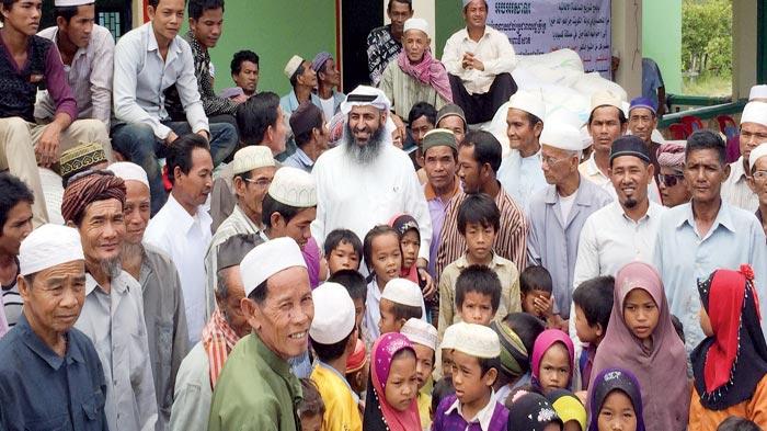 أحمد الجسار بين مجموعة من الأهالي في احدى القرى الكمبودية