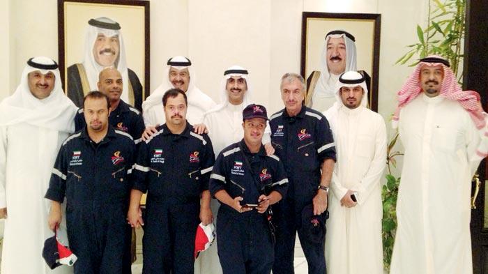 الشيخ ثامر الجابر خلال استقباله طاقم رحلة الأمل