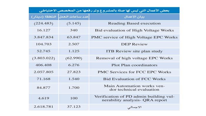 مخصصات احتياطية بالمخالفة للضوابط نتج عنها فوائض بـ 361.3 مليون دينار تستغل بالأعمال خارج نطاق العقد