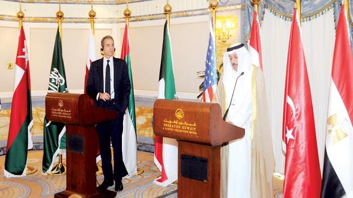 وكيل الخارجية الأمريكية ريتشارد ستينغل والسفير ناصر المزين أثناء المؤتمر الصحافي (تصوير: بسام أبو شنب)