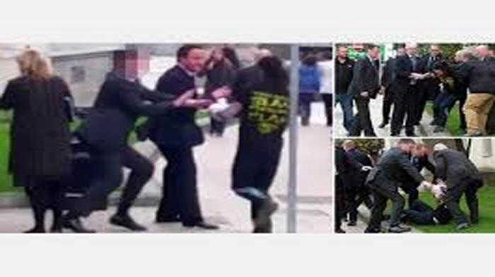 حرس رئيس الوزراء البريطاني يهرعون به لسيارته بعد أن واجهه رجل