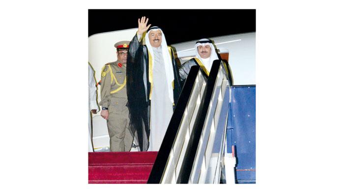 سموه لدى وصوله الى البلاد وفي استقباله سمو ولي العهد