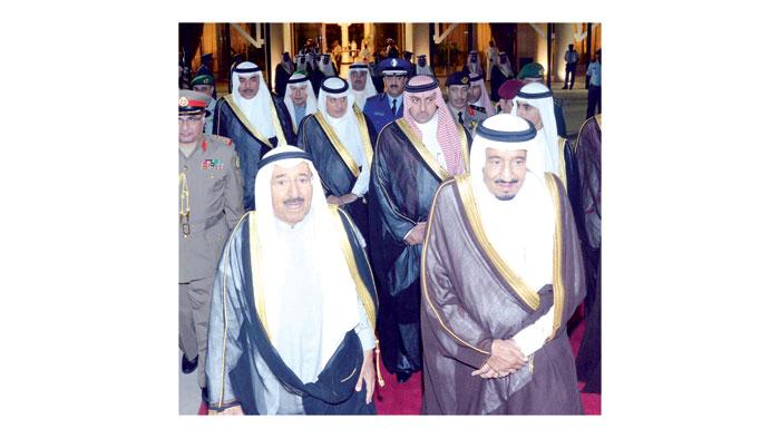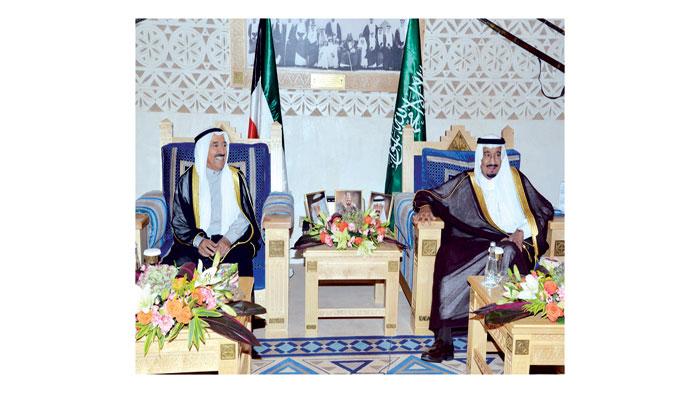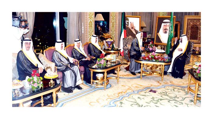 سمو الأمير خلال لقائه خادم الحرمين الشريفين بحضور الوفد الكويتي المرافق لصاحب السمو