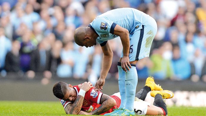 زادت معاناة مانشستر يونايتد الدفاعية الاحد بعد اصابة المدافع الارجنتيني ماركوس روخو بخلع في الكتف وطرد قلب الدفاع كريس سمولينج في الخسارة 1/0 في مباراة قمة أمام مانشستر سيتي بالدوري الانجليزي الممتاز لكرة القدم.