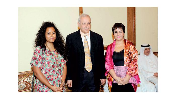 الوزير متوسطا الزميلة ليلى أحمد وابنتها مينار (تصوير: محمد قطوف)
