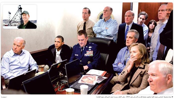 واضاف اونيل الذي تلقى اوسمة عدة انه كان في الموقع الثاني على راس قوة خاصة عند اقتحام غرفة بن لادن الذي بدا للحظة عند الباب الا ان الجندي في المقدمة فشل في اصابته.وقال «تقدمت امامه للدخول الى الغرفة عند فتحة الباب.وبن لادن كان واقفا وراء امراة ويدفعها الى الامام بيديه».