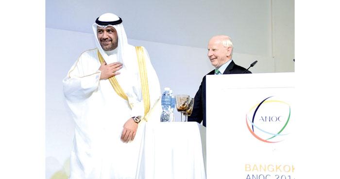 زكت الجمعية العامة الـ19 لاتحاد اللجان الاولمبية الوطنية (انوك) في اجتماعها الذي عقد في العاصمة التايلندية بانكوك الشيخ أحمد الفهد الاحمد الصباح رئيسا للاتحاد للسنوات الاربع المقبلة بصفته المرشح الوحيد للرئاسة.