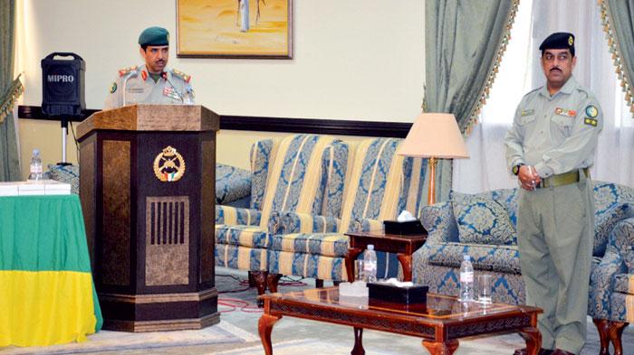 العميد فالح متحدثاً إلى الأفراد