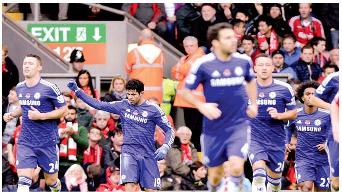 سجل الاسباني دييغو كوستا هدفه العاشر هذا الموسم وقاد تشيلسي الى تعزيز صدارته بعدما حسم قمة مضيفه ليفربول 1/2 في افتتاح المرحلة الحادية عشرة من الدوري الانجليزي لكرة القدم.