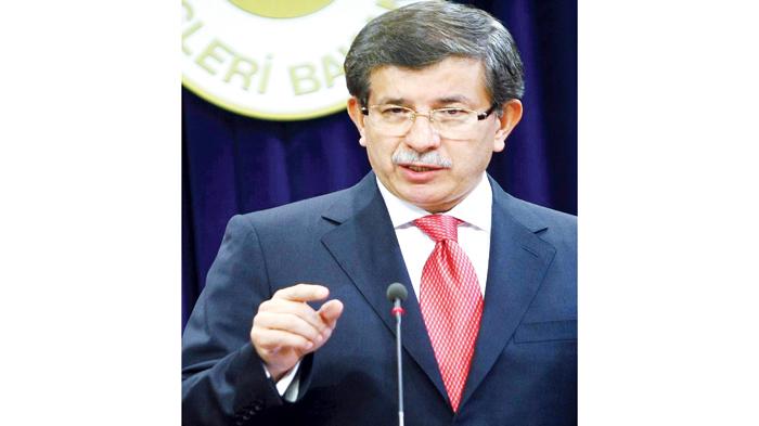 وزير الخارجية التركي أحمد داوود اوغلو في مؤتمره الصحافي أمس بأنقرة (ا ف ب)