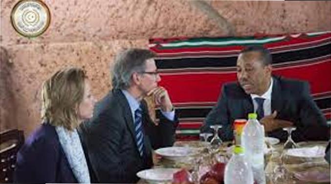 وحسب الحكومة الليبية فقد أبدى المسؤول الأممي خلال اجتماعه معها "استعداده للعمل بكل جهده للوصول إلى حل سلمي بين الأطراف الليبية من أجل استقرار ليبيا والمنطقة لكن الجماعات الإرهابية التي لا تعترف بالسلطة الشرعية تريد تقويض المسار الديمقراطي في البلاد وتسعى إلى تقسيمها".