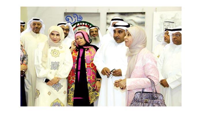 مريم الوتيد خلال جولتها في المعرض الفني «للإنسانية قائد»