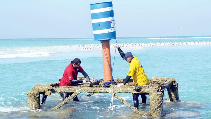 فريق الغوص يضع علامات مؤقتة لركيزة مكسورة في رأس «الزور»