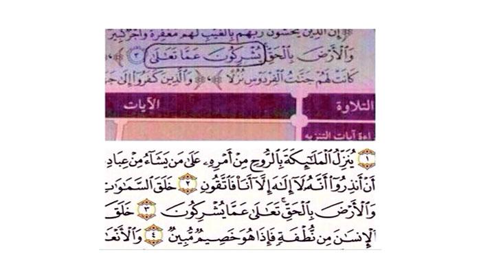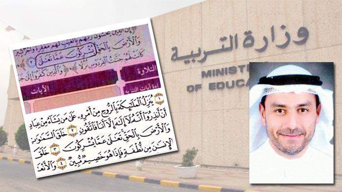 الخطأ في الآية الكريمة كما ورد في منهج التجويد في الصف الرابع الابتدائي والآية الصحيحة كما وردت في كتاب الله عز وجل