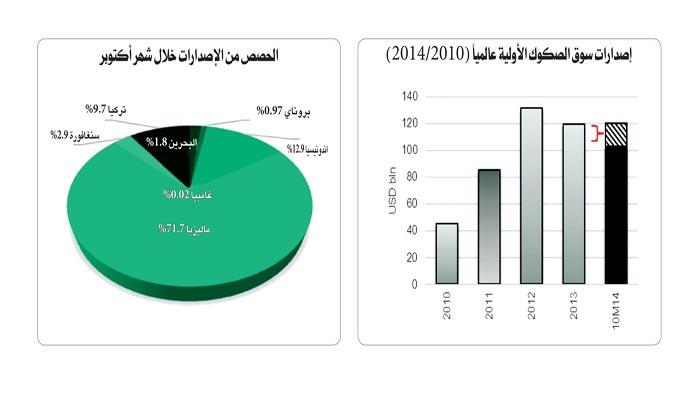 قال تقرير شركة «بيتك للابحاث» المحدودة التابعة لـ«بيتك» عن اداء سوق الصكوك في 10 اشهر ان سوق الصكوك الأولية العالمي تخطى حاجز الـ 100 مليار دولار ليصل حجم الاصدار الى 102.94 ملياراً من أول العام حتى شهر أكتوبر 2014 (عشرة أشهر) بارتفاع نسبته %5.7 من 97.39 مليار دولار المسجلة في عشرة الشهور الأولى من 2013.