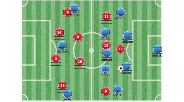 ولذلك لم يتمكن الازرق بالامس من تنفيذ هجمات مرتدة بآلية سريعة محددة تقوم على نقل الكرة كما كان ايام غوران بثلاث أو اربع تمريرات وانما كانت المرتدة تنطلق عشوائيا بمهارة فردية خالصة من فهد العنزي الذي كان يضطر لأن يقطع بالكرة مسافة تتجاوز الـ50 مترا واحيانا 70 مترا من امام الظهير الى منطقة الخصم في مقابل اداء فردي سلبي لوليد علي الذي جعل الازرق يحلق بجناح مكسور من خلال افتقاده للسرعة وعدم قدرته على الاحتفاظ بالكرة ليعطي مجالا للظهير الايسر فهد العوض بلانطلاق الامامي واحداث «الأوفر لاب» وكان مستغربا ان يصر فييرا على بقاء وليد في مركزه حتى منتصف الشوط الثاني حيث جاءت قراءته متأخرة باشراك عبدالعزيز المشعان، هذا كله على الرغم من ان وليد وفهد العنزي اتيحت لهما فرصة جيدة للانطلاق خلف ظهيري العراق مطلع المباراة حيث كان الظهيران العراقيان يتقدمان معا في البناء الهجومي وهو ما احتاج مدرب العراق حكيم شاكر الى 20 دقيقة لقراءته وتصحيح اوضاعه بتحويل همام الى الطرف الايسر ليغطي على الظهير المتقدم دائما علي عدنان ويسانده في مواجهة فهد العنزي.