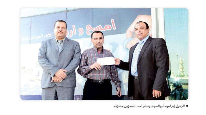 اختتمت جريدة «الوطن» مهرجانها الترويجي لعام 2014، والذي اقامته تحت شعار «تدلل وافرح»...وقد اقيم حفل الختام في مقر الجريدة بالشويخ وسط أجواء احتفالية مميزة، سيطرت عليها مباهج الفرح والسعادة الغامرة، حيث تم السحب الثاني والأخير في هذا المهرجان يوم الأحد الماضي، على 7 سيارات قيمة، بحضور ممثل وزارة التجارة والصناعة المفتش التجاري أحمد الحمد، وجاء الحظ من نصيب محمد مفلح الحمدان صاحب الكوبون «5598» ليفوز بالمركز الاول سيارة مرسيدس بنز E 200 موديل 2014م، اما الفائز الثاني فهو فايز مقعد العتيبي كوبون رقم «1367» وحصل على سيارة مرسيدس بنز E 200 موديل 2014م، والفائز الثالث هاني علي حسين كوبون رقم «755»، والرابع ناصر ناجي الحمزة، كوبون رقم «201»، وفاز كل منهما بسيارة هوندا أكوورد LXIB 4D موديل 2014، أما الفائز الخامس فهو ياسر علي الدين عبدالعال، كوبون رقم «7181»، والفائز السادس سلمان علي حسن، صاحب الكوبون رقم «1121»، والفايز الاخير فريد غطاس مسلم، صاحب كوبون رقم «3690» وجميعهم فازوا بهوندا سيفيك 4D LXI موديل 2014م.
