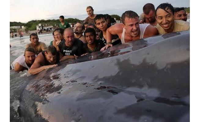 نجح مجموعة من السياح في إعادة حوت ضخم مرة أخرى إلى مياه المحيط الهادي غرب "نيكاراجوا" الأمريكية؛ بعد أن تقطعت به السبل ووصل إلى الشاطئ، وهو ما عرّض حياته للخطر.