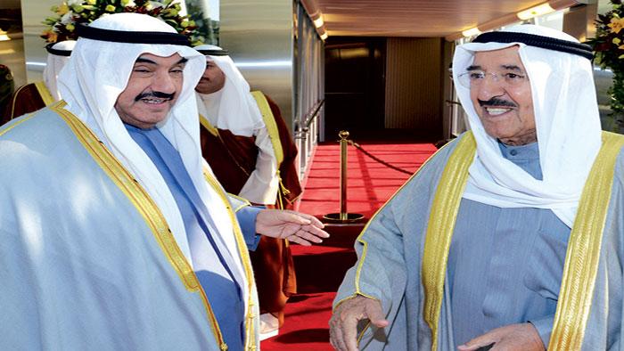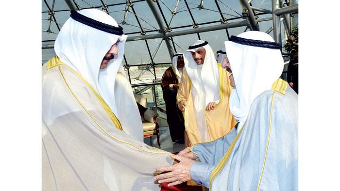 سمو أمير البلاد اثناء مغادرته البلاد وفي وداعه سمو نائب الأمير ولي العهد الشيخ نواف الأحمد