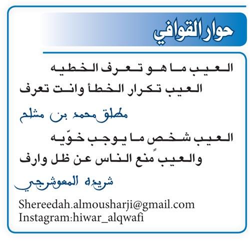 شريده المعوشرجيShereedah.almousharji@gmail.comInstagram:hiwar_alqwafi