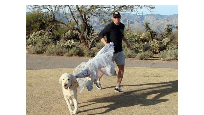 بدلاً من البكاء على الماضي وندب حظه، قرر “كيفن كوتر” الانتقام من زوجته ، التي هجرته، بطريقة جديدة وفريدة من نوعها من خلال استخدام فستان الزفاف الخاص بها في صور ساخرة وكوميدية ظل يعمل عليها لمدة 4 سنوات كاملة.