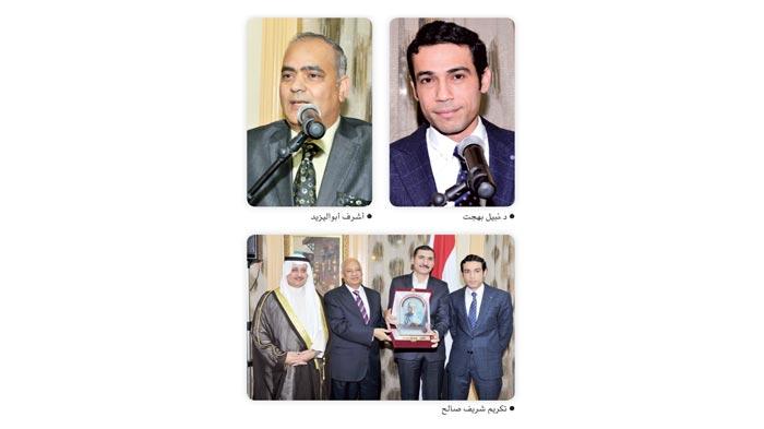 جاء ذلك خلال الاحتفالية التي اقامها الملحق الثقافي المصري د.نبيل بهجت لتكريم الكاتبين اشرف ابو اليزيد وشريف صالح وافتتاح معرض رسوم الاطفال «مصر الجميلة» بحضور نائب الأمين العام للمجلس الوطني للثقافة والفنون والآداب بدر الدويش وعدد من أركان البعثة الدبلوماسية، مساء أمس الأول بمقر المكتب الثقافي.