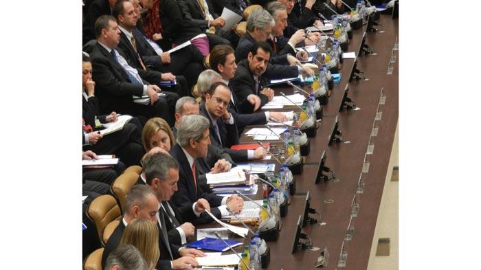 وزراء دول التحالف اثناء الاجتماع في بروكسل (كونا)