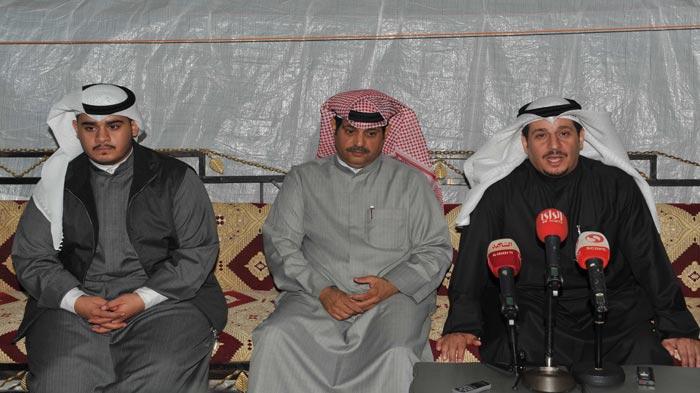 مسلط بوهليبة وفرز الديحاني وشملان بوهليبة اثناء المؤتمر الصحافي (تصوير: الأمجد محمود)