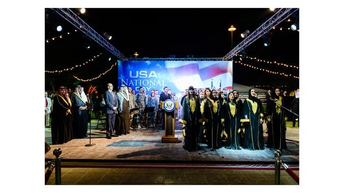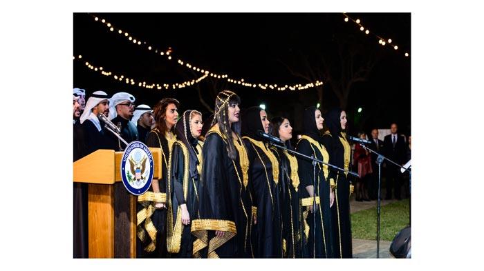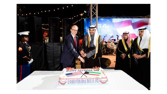 الشيخ محمد العبدالله مشاركا السفير الأمريكي قطع كيكة الاحتفال