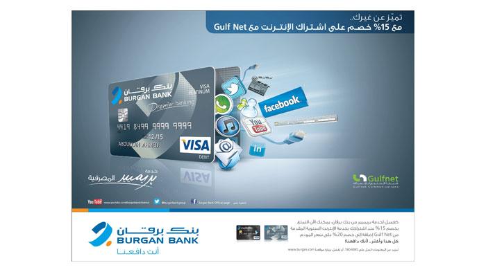 أعلن بنك برقان عن تقديمه عرضاً مميزاً لعملاء خدمة بريميير المصرفية عند الاشتراك في خدمات الانترنت المقدمة من شركة جلف نت للاتصالات، الشركة الرائدة في مجال توفير خدمة الانترنت في الكويت، ليستفيد العملاء من خصم %15 للاشتراك السنوي و%20 عند شراء المودم.