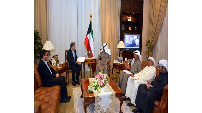 وسلم عنايتي خلال الاجتماع رسالة موجهة الى النائب الأول لرئيس مجلس الوزراء ووزير الخارجية الشيخ صباح خالد الحمد الصباح من وزير خارجية الجمهورية الاسلامية الايرانية محمد جواد ظريف.