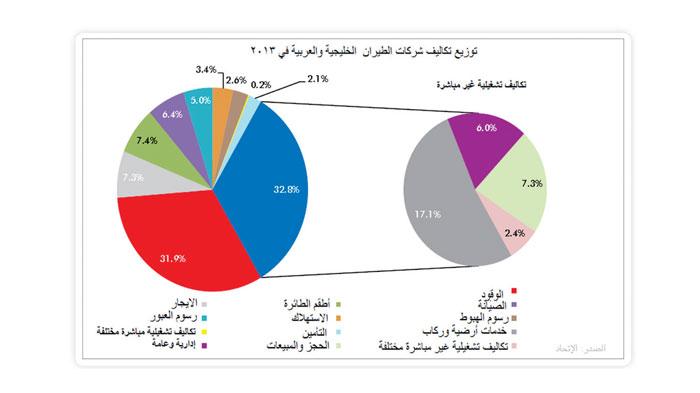 كما توقع التقرير من المتوقع ان يبلغ متوسط أسعار وقود الطائرات 99.9 دولارا للبرميل الواحد في العام 2015، بينما قد يصل الانفاق الكلي على الوقود 192 مليار دولار، وهو ما يمثل %26 من اجمالي تكاليف الصناعة.ومن المهم ان نلاحظ مدى تأثير انخفاض أسعار الوقود سوف يتحقق على المدى البعيد، وذلك بسبب ممارسات الشراء المسبق للوقود.ولايزال تحسين كفاءة استهلاك الوقود يشكل أولوية بالنسبة الى شركات الطيران.وتشير بعض التقديرات الى ان الكفاءة في استهلاك الوقود قد تحسنت بنسبة %1.8 في العام الجاري 2014، ومن المتوقع ان يتم تسجيل تحسن في كفاءة استهلاك الوقود في العام المقبل 2015. ومن الممكن تحقيق مزيد من التحسن وتسريع هذه الآلية من خلال تخفيض حرق الوقود بنسبة %5 نتيجة عدم الكفاءة في المجال الجوي والمطارات.