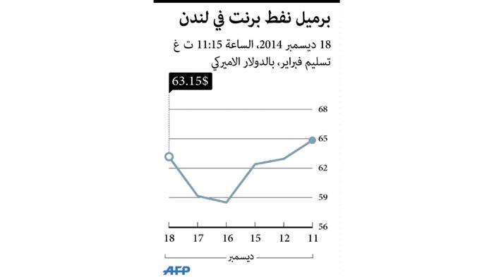 وقد قفز سعر النفط الكويتي 4 دولارات الى 57 دولارا امس ارتفاعا من 53.9 دولارا يوم الاربعاء الماضي، كما ارتفع سعر خام برنت بنسبة %3 الى 63.27 دولارا وصعدت العقود الآجلة للخام الامريكي تسليم يناير الى 58.3 دولارا، وذلك بعد جمدت شركة شيفرون خططا للتنقيب عن النفط في بحر بوفورت في المنطقة الكندية من القطب الشمالي الى اجل غير مسمى بينما خفضت شركة ماراثون اويل انفاقها الرأسمالي للعام المقبل بنحو %20.