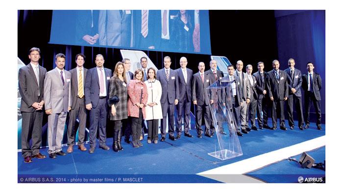 صورة جماعية لمسؤولي «الكويتية» و«ايرباص» خلال حفل التسليم