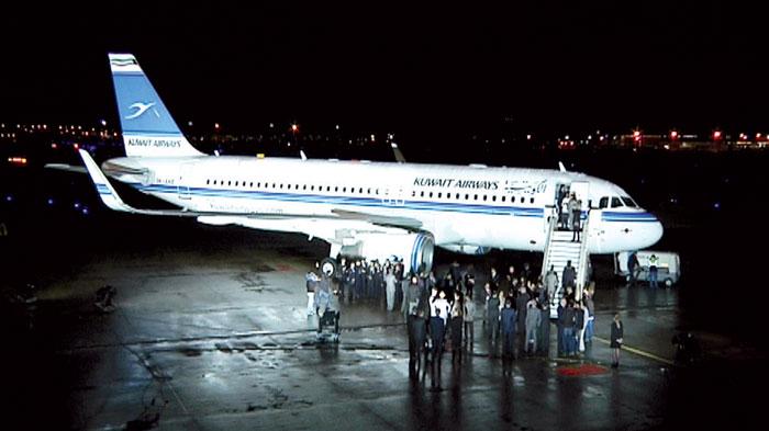 رشا الرومي ونبيلة العنجري تتلقيان التهاني عقب وصول الطائرة الى مطار الكويت