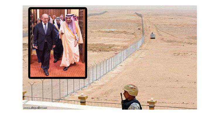 لقطة عامة للحدود الشمالية للمملكة العربية السعودية. وفي الإطار الأمير سلمان بن عبدالعزيز ولي العهد السعودي يرحب بوزير الدفاع الفرنسي حيث ناقشا شؤون ال