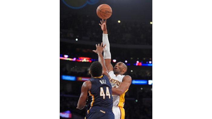 قاد النجم المخضرم كوبي براينت فريقه لوس انجليس ليكرز الى فوز مثير وصعب على انديانا بيسرز 87/88 ضمن دوري كرة السلة الأمريكي للمحترفين.