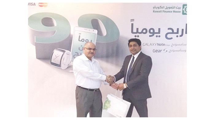 فاز 7 من عملاء بيت التمويل «بيتك» بجوائز قيمة عبارة عن جهاز «سامسونغ Galaxy Note Edge وسامسونغGear S » لكل منهم في السحب الثالث للحملة الترويجية الجديدة للبطاقات المصرفية والتي تحمل عنوان «اربح يوميا سامسونغ Galaxy Note Edge، وسامسونغ Gear S لمدة 90 يوما»، والمستمرة حتى 5 يونيو المقبل، لتشجيع العملاء على استخدام بطاقات الفيزا وماستركارد (الائتمانية والاعتماد والدفع المسبق والصرف الالي) في مشترياتهم داخل وخارج الكويت.
