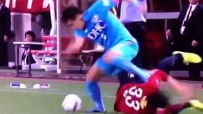 وارتطمت قدم اللاعب الكوري الجنوبي بوجه مو كانازاكي لاعب كاشيما أنتلرز أثناء كرة مشتركة بين اللاعبين بالقرب من الخط الجانبي.