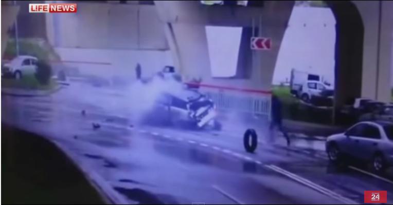 نجا سائق في مدينة سوتشي الروسية بأعجوبة بعدما انزلقت سيارته التي كانت تسير بسرعة هائلة نحو حافة جسر ثم سقوطها من ارتفاع 20 مترا، ما حوّلها إلى كتلة من الحديد نتيجة اصطدامها بالأرض.