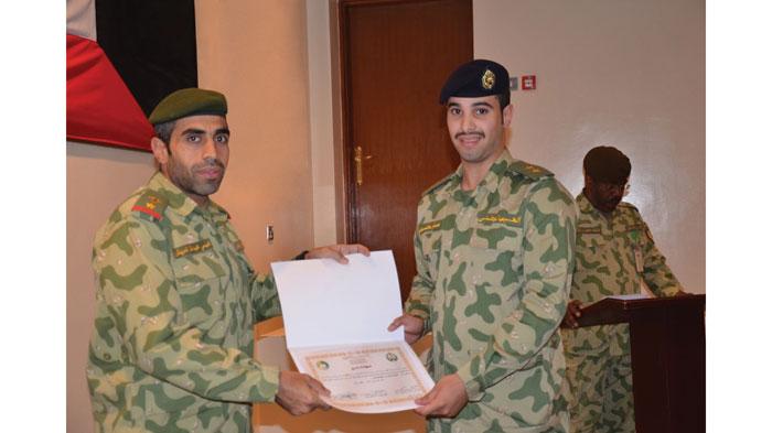 وفي ختام الحفل قام المقدم الركن عيسى المبيلش بتوزيع شهادات التخرج على المشاركين