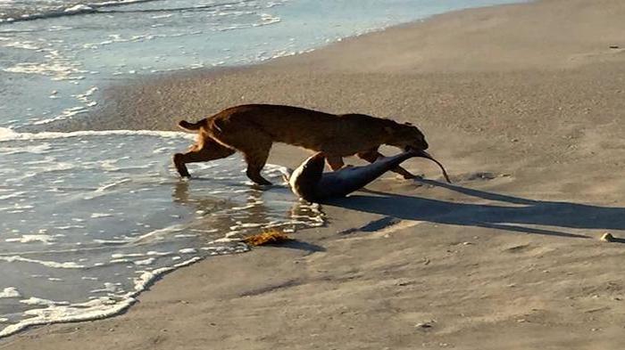 وقال موقع "جريند تي في"، إن شخصاً يُدعى "جون بيلي" شاهد القط البري من نوع "الكميت" وهو يجر سمكة قرش صغيرة، ويخرج بها من الماء، وقد تمكن هذا الشخص من التقاط الصورة التي أثارت الجدل، يوم الاثنين الماضي على شاطئ سبستيان ستيت بارك.