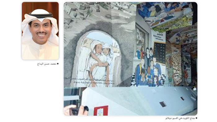 وأضاف ان التحدي كبير والمنافسة قوية أيضا فهناك أكثر من 145 دولة مشاركة في هذا المعرض والجميع يتطلع ويعمل على استقطاب الزوار مؤكدا ان الفرق الكويتية المشرفة والعاملة في هذا المشروع تعي جيدا حجم المسؤولية لذلك حرصت على تقديم عمل مميز يليق بمكانة الكويت، مثمنا الدعم الكبير الذي يقدمه وزير الإعلام وزير الدولة لشؤون الشباب الشيخ سلمان صباح سالم الحمود الصباح ووكيل وزارة الإعلام طارق المزرم للفرق العاملة في المشروع الذي سيتيح لالاف الزوار من مختلف دول العالم التعرف على الكويت من جوانب عدة ولولا هذا الدعم اللامحدود لما تمكنت الفرق من تقديم جناح مميز يبرز صورة مشرفة عن الكويت.