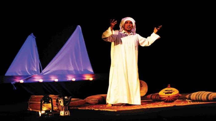 مشهد من مونودراما «الموسيقار شبيثي» (تصوير: محمد قطوف)